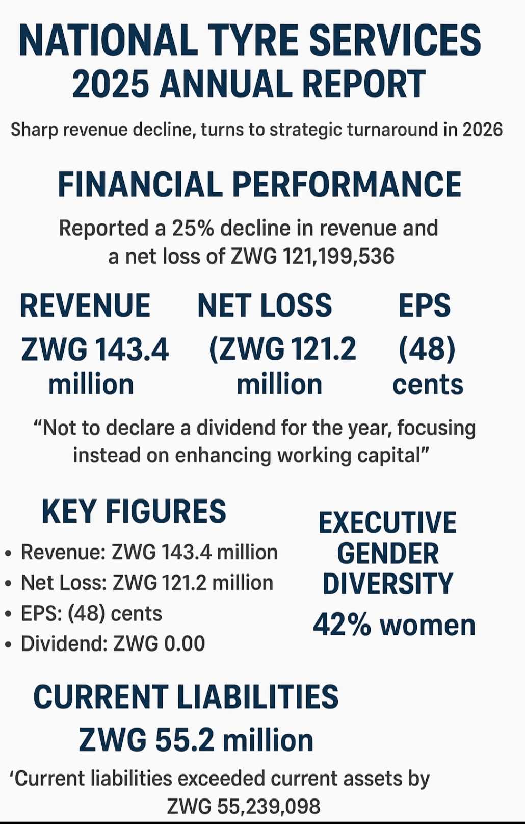 Despite current liabilities exceeding assets by ZWG$55,239,098, the company remains committed to a turnaround strategy “leveraging our technical expertise and experienced workforce to enhance customer service, retain market share, and fortify our branch network for sustained growth.”