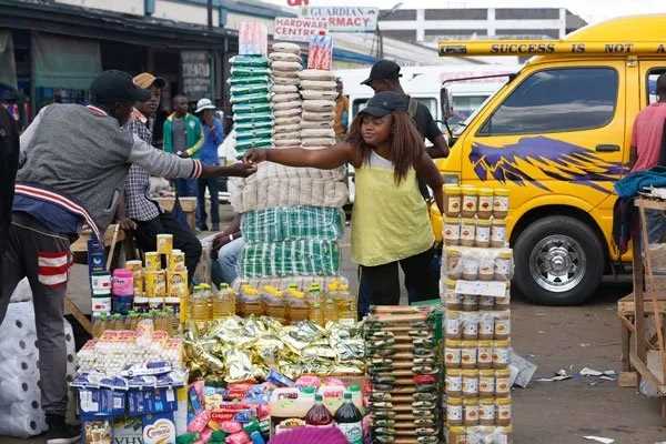 Informal traders sell groceries right at the entrance of a large retail chainPatience MuchemwaThe pr...