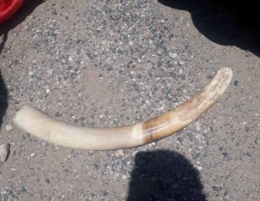 “An operation was conducted and the suspects were apprehended at about 12pm along the western border line at Beitbridge. One pangolin and an elephant tusk with an estimated street value of R1 million were found concealed inside the bags they were carrying.”