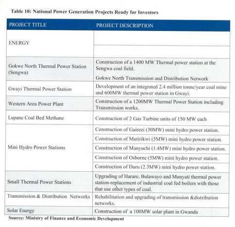 The country has undertaken large investment in power generation with Chinese funded Kariba South Hydro Power Expansion has added 300 MW to the national grid.
